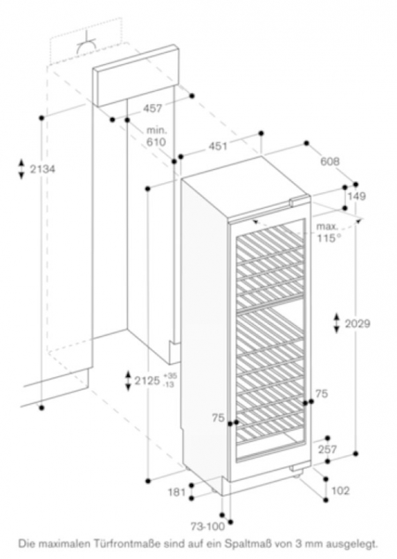 - Bei Standard-Innenausstattung (12 Flaschenablagen) können bis zu 6 Magnum-Flaschen gelagert werden