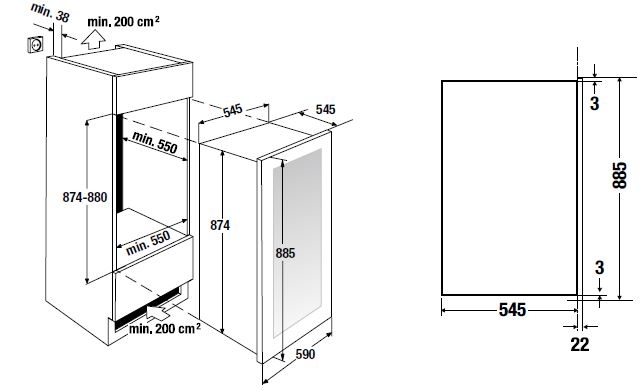• Nischenmaße B x H x T  ca. 550 x 874-880 x 550 mm