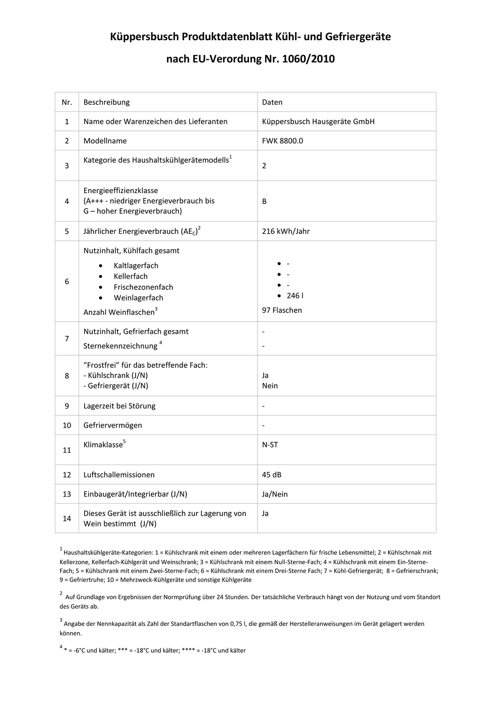 •    Austausch gegen einen gleichwertigen oder neuen Artikel Küppersbusch FWK 8800.0
