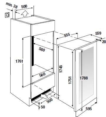 • Gerätemaße (exkl. Griff)  B x H x T  ca. 595 x 1.788 x 559 mm