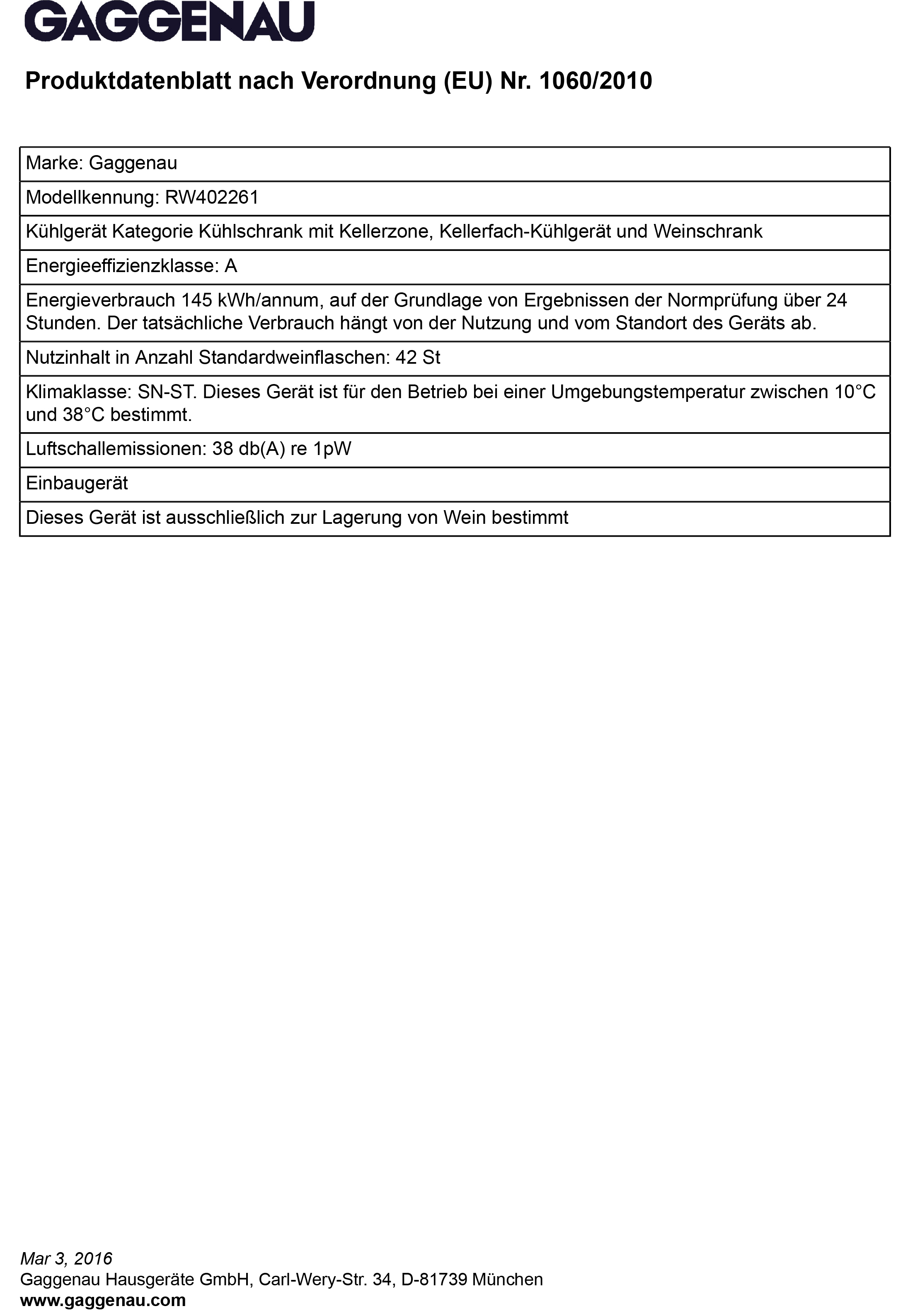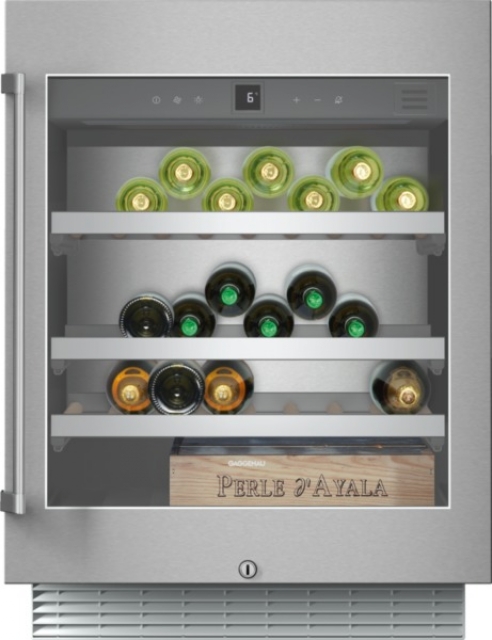 Gaggenau Wein-Klimaschrank, Steuerung der Luftfeuchtigkeit, Kapazität 42 Flaschen, eine Klimazone für maximale Kapazität, LED-Beleuchtung, ausziehbare Flaschenablagen aus Buchenholz und Alu, RW 402 261