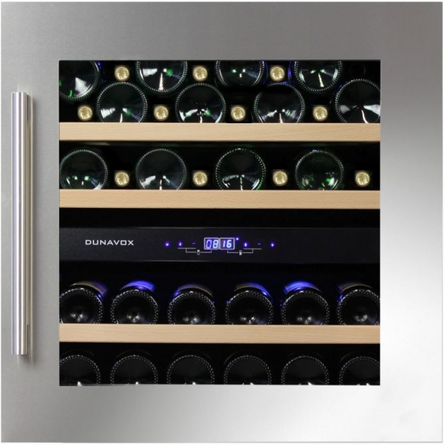 Zwei-Zonen Kompressor-Weinkühlschrank aus der Dunavox Exklusiv-Serie. Durch das elegante Erscheinungsbild mit Edelstahltürgriff ist dieser Einbau-Weinkühler ein Highlight für die moderne Küche.