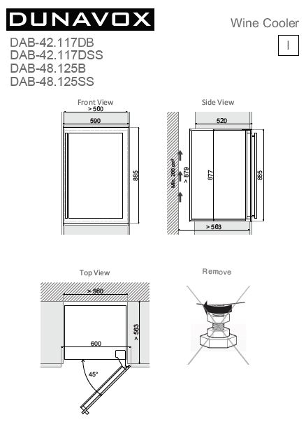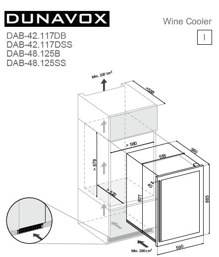 Zwei-Zonen Kompressor-Weinkühlschrank aus der Dunavox Exklusiv-Serie. Flaschen können längsseitig auf die vorhandenden Holzböden gelegt werden. Dieses Gerät ist ein reines Einbaugerät und kann somit nicht als freistehendes Modell verwendet werden.