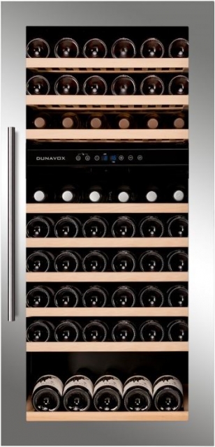 Zwei-Zonen Kompressor-Weinkühlschrank aus der Dunavox Exklusiv-Serie. Durch das elegante Erscheinungsbild mit Edelstahltürgriff ist dieser Einbau-Weinkühler ein Highlight für die moderne Küche.