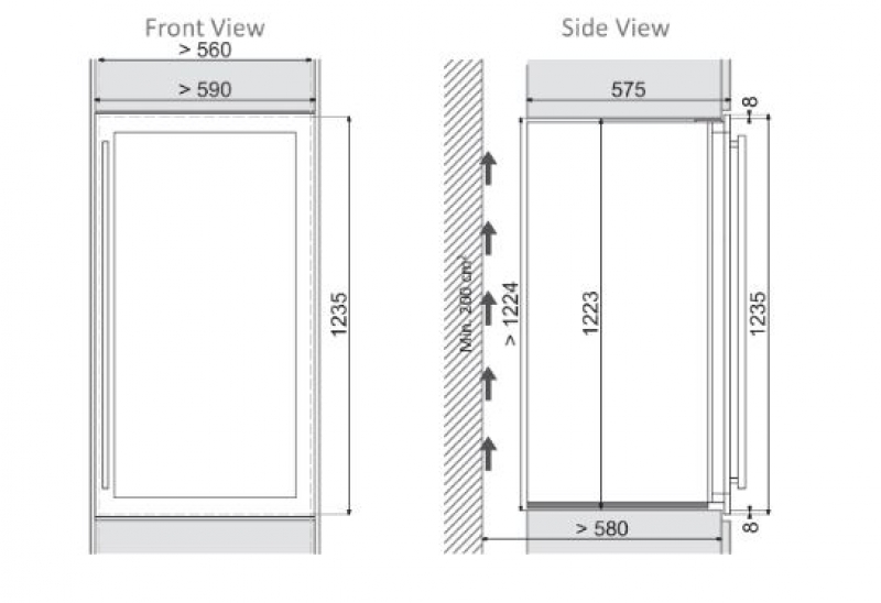 Zweizonenmodell : Obere Zone: 30 Flaschen (0,75 l Bordeaux) & Untere Zone: 57 Flaschen (0,75 l Bordeaux)
