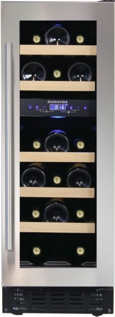 Zwei-Zonen Weinkühlschrank aus der Dunavox Exklusiv-Serie. Durch das elegante Erscheinungsbild, mit Edelstahltürgriff ist dieser Einbau-Weinkühler ein Highlight für die moderne Küche.