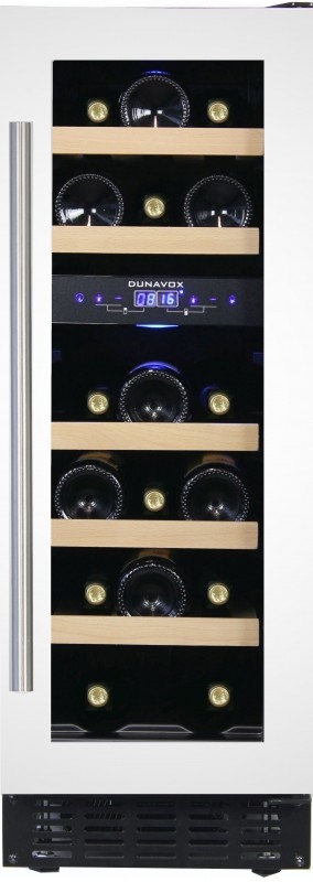 Zwei-Zonen Weinkühlschrank aus der Dunavox Exklusiv-Serie. Durch das elegante Erscheinungsbild, mit schwarzem Stahlgehäuse und Edelstahltürgriff ist dieser Einbau-Weinkühler ein Highlight für die moderne Küche.