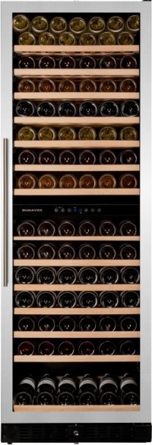 Zwei-Zonen Weinkühlschrank aus der Dunavox Exklusiv-Serie. Durch das elegante Erscheinungsbild mit Edelstahl (INOX) Stahltürrahmen und Edelstahltürgriff ist dieser Einbau-Weinkühler ein Highlight für die moderne Küche.
