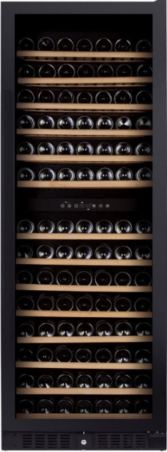 Exklusives Weinklimagerät mit zwei Zonen aus der Dunavox Exklusiv-Serie. Durch das elegante Erscheinungsbild mit schwarzem Stahltürrahmen und Edelstahltürgriff ist dieser Einbau-Weinkühler ein Highlight für die moderne Küche.