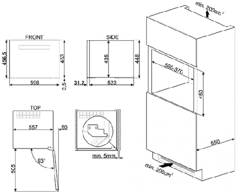 • 1 LED Display/Grafik Symbole, weiß beleuchtet für Temperatur, Kindersicherung-/Tastensperre, Innenbeleuchtung, Umluftkühlung und Sonderfunktionen