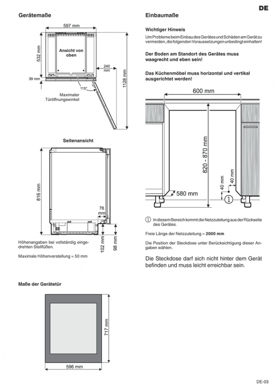 - Nischenhöhe 820.0 mm