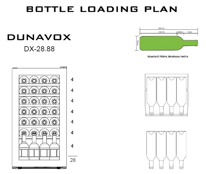 Kapazität Flaschen: 28 (0,75l Bordeaux)