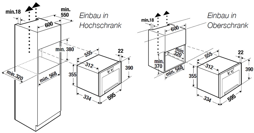 • Gerätemaße B x H x T ca. 595 x 390 x 334 mm (inkl. Front 22 mm)