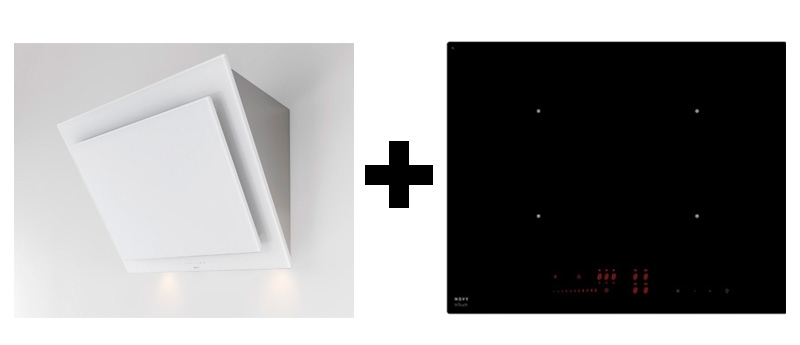 Novy Dunstabzug-/Kochfeld-Kombination, bestehend aus: Novy Vision Wandhaube 7859, Glas weiss, Umluftversion und Novy Power 1763/2 Induktionskochfeld