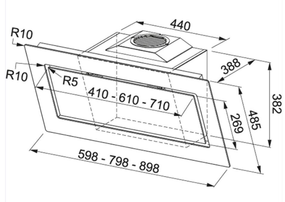 Sicherheitsabstand zwischen Unterkante Haube und Kochfeld: 40cm