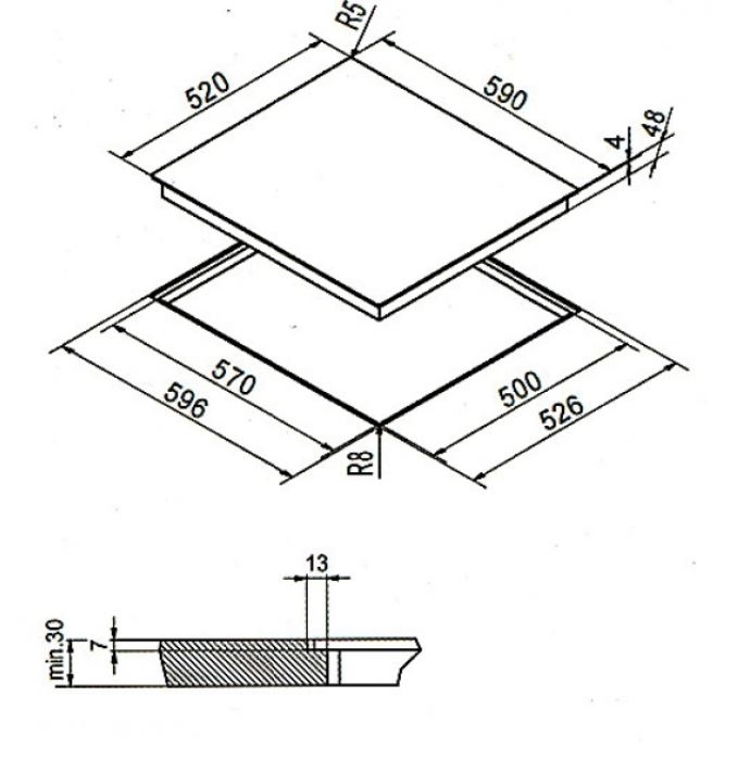 Ausschnittmaße aufliegend: 570mm x 500 mm