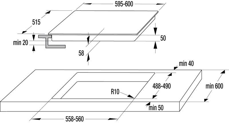 • Einbaumaß min. (HxBxT in mm): 590-600x560-568x550