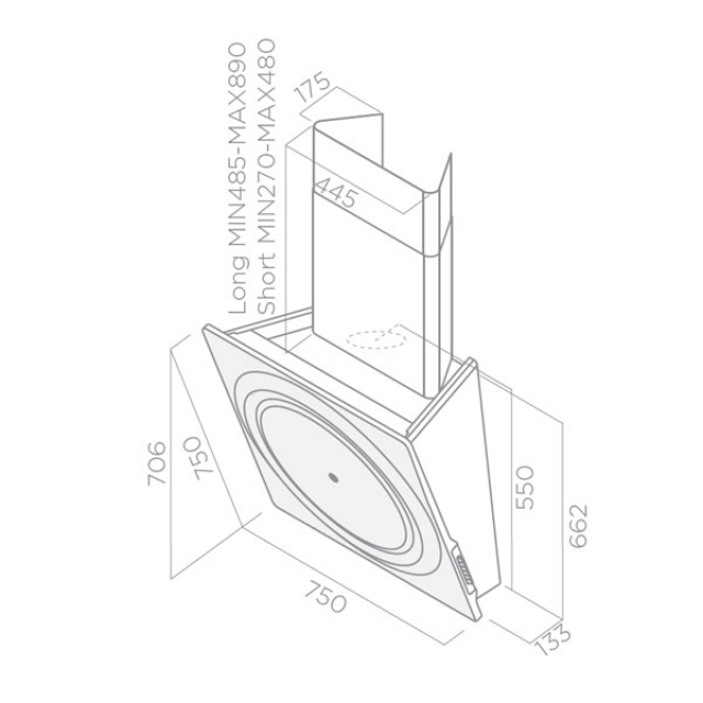 In diesem Fall wird die Abzugshaube an ein in der Wand verlegtes Rohr zur Ableitung von Rauch und Küchendünsten angeschlossen. Der innovative zweite Luftaustritt an der Rückseite ermöglicht eine Abluftversion ohne sichtbare Rohrführung.