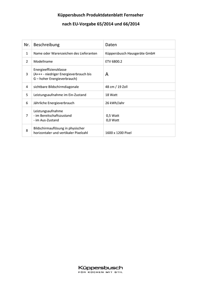 Küppersbusch ETV 6800.2 W2 Weiß, Design Black Chrome, Einbau-LCD-TV, INKLUSIVE 5 JAHRE HERSTELLER-GARANTIE! * (Bedingungen Herstellergarantie)