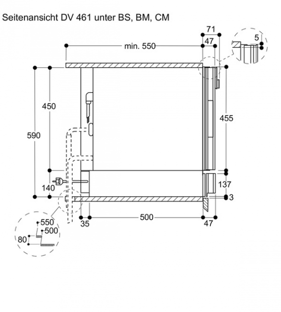 - Einbau BS/BM/CM direkt über DV in Nische 59 cm ohne Zwischenboden