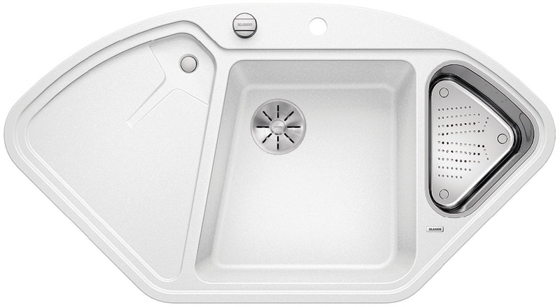 • Die Spüle Blanco Delta II Eck ist in den Farbvarianten "anthrazit", "felsgrau", "alumetallic", "perlgrau", "weiß", "jasmin", "champagner", "tartufo", "muskat" und "cafe" erhältlich.