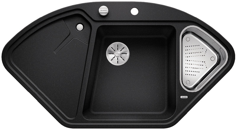 Die Spüle Blanco Delta II Eck ist in den Farbvarianten "anthrazit", "felsgrau", "alumetallic", "perlgrau", "weiß", "jasmin", "champagner", "tartufo", "muskat" und "cafe" erhältlich.
