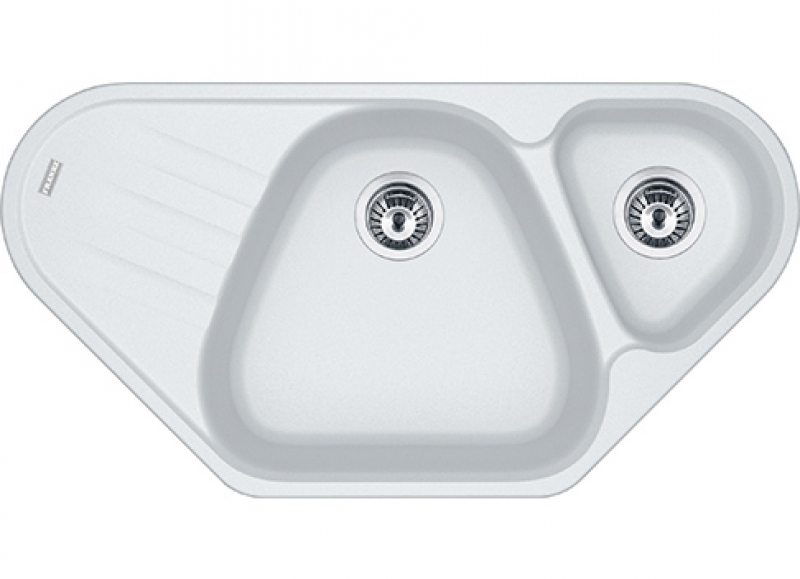 Franke Antea AZG 661-E Eckspüle, Fragranit DuraKleen Plus, Siebkorb-Excenterventil, Farbe Glacier