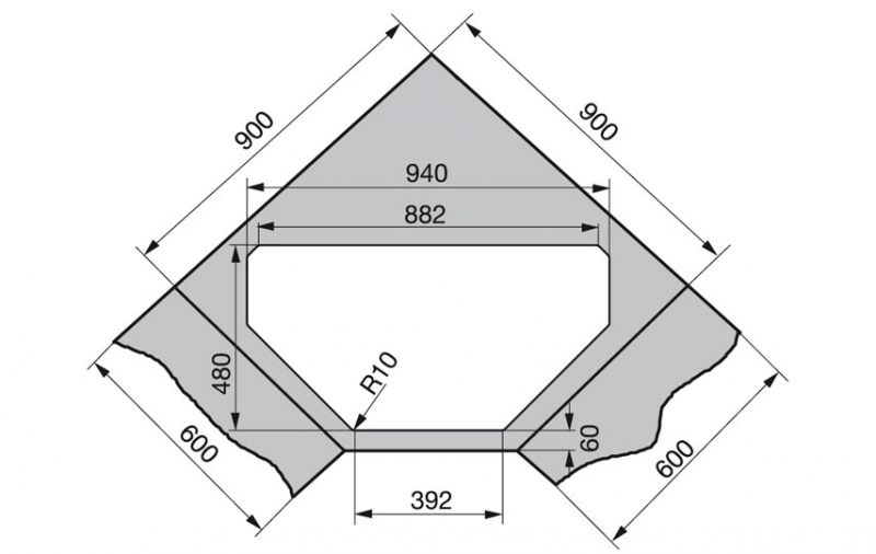 Arbeitsplattentiefe bei Eckschrank 90/90 cm mind. 700 mm