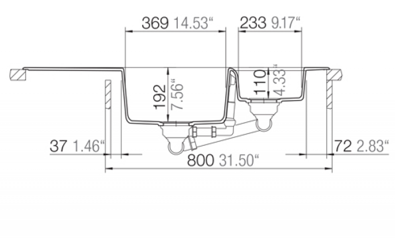 Ablaufgarnitur 3 1/2" inklusive aller Ablaufverbindungen