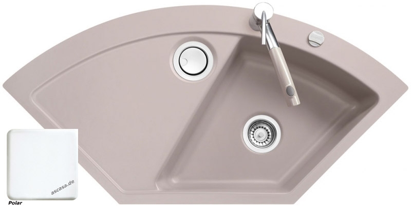 • diese Spüle ist nur als flächenbündige Spüle einbaubar (somit nur in Kombination mit Stein- oder Granitarbeitsplatten); ein Einbau als Einbau- bzw. Auflage-Spüle oder der Einsatz als Unterbau-Spüle ist nicht möglich! Es gibt von diesem Modell jedoch eine Schwester-Variante, die für den Einbau vorgesehen ist