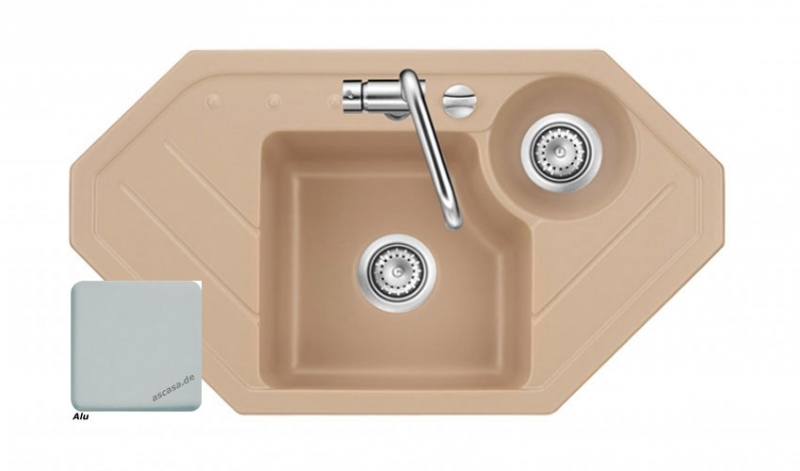 • diese Spüle ist nur als Einbau- bzw. Auflage-Spüle einbaubar; ein flächenbündiger Einbau oder der Einsatz als Unterbau-Spüle ist nicht möglich! Es gibt von diesem Modell jedoch eine Schwester-Variante, die dafür vorgesehen ist (am Ende "F" für die flächenbündig einzubauende Variante)