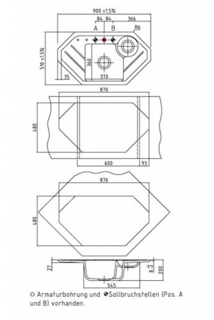 • Der Auslieferungszustand der Spüle beinhaltet eine Lochbohrung für die Armatur. Die zusätzliche(n) Lochbohrung(en) sind vorgestanzt (serienmäßige Vorbohrung); die Oberseite der Spüle ist verschlossen und muß vor Ort an den gekennzeichneten Stellen durchstoßen werden. Soll dies werksseitig vom Hersteller vorgenommen werden, wird dafür 13,-- Euro pro Spüle berechnet