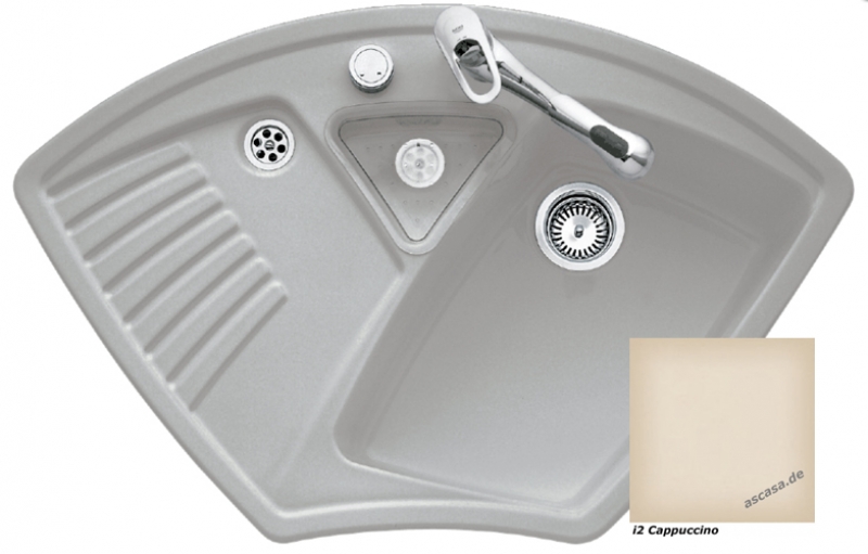 1 Becken mit zusätzlichem Ablauf in der Abtropffläche inkl. Resteschale