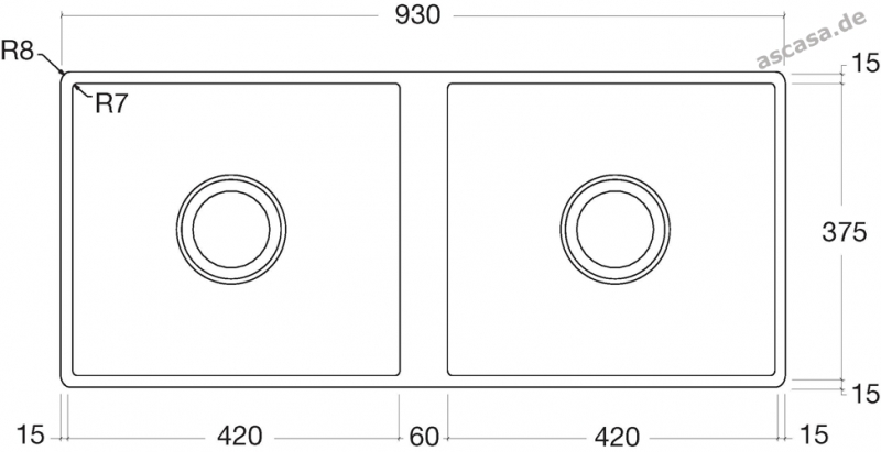 Dornbracht Water Units, Doppelbecken 930 x 405 mm, aus gebürstetem Edelstahl