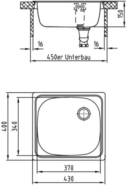 Beckenmaße: 370 x 340 mm