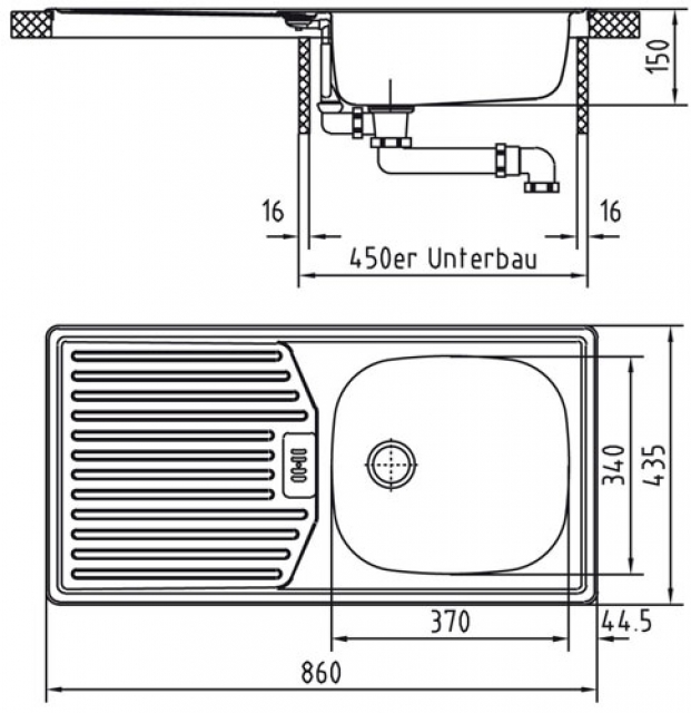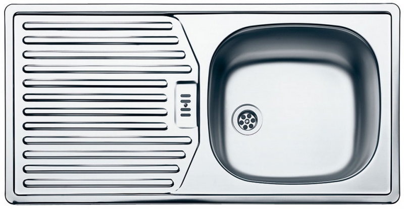 reversibel heißt: die Spüle läßt sich sowohl links als auch rechts herum einbauen; d. h. Sie können selbst entscheiden, ob Sie das Abtropfbecken auf der rechten oder auf der linken Seite haben möchten.