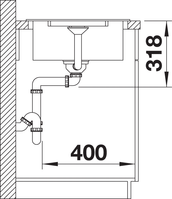 Maximal groß gestaltetes, geradliniges Becken für den 40 cm Unterschrank