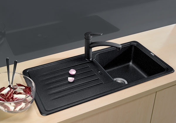 reversibel heißt: die Spüle läßt sich sowohl links als auch rechts herum einbauen; d. h. Sie können selbst entscheiden, ob Sie das Abtropfbecken auf der rechten oder auf der linken Seite haben möchten.