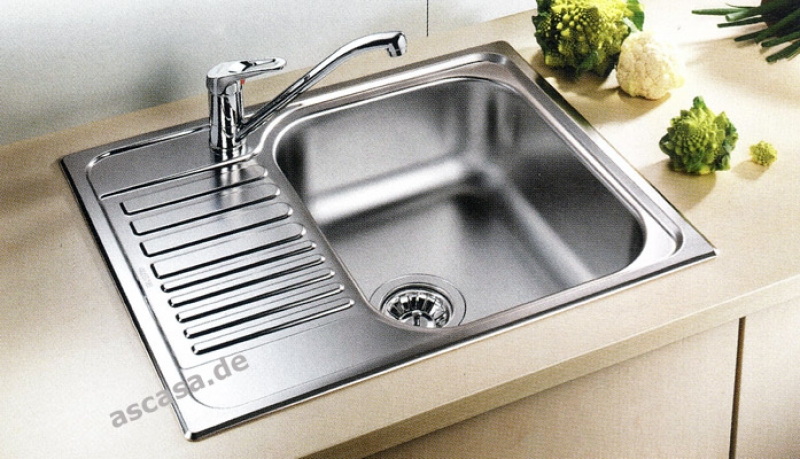 reversibel heißt: die Spüle läßt sich sowohl links als auch rechts herum einbauen; d. h. Sie können selbst entscheiden, ob Sie das Abtropfbecken auf der rechten oder auf der linken Seite haben möchten.
