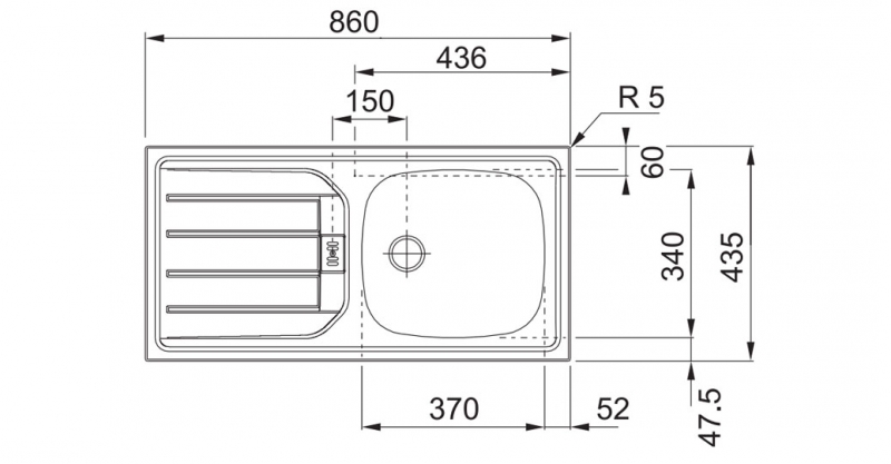 Franke Nova ESN 614 Einbauspüle Edelstahl seidenmatt, reversible Einbaumöglichkeit, ohne Ablaufgarnitur, 101.0288.026