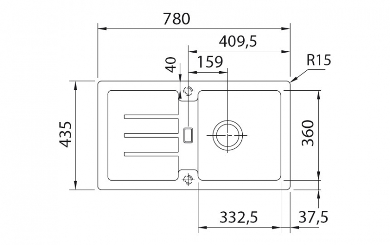 • Großes Becken mit perfekt nutzbarem Abtropfbereich