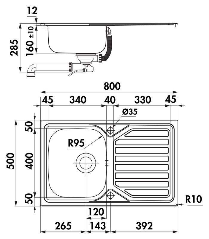 reversibel heißt: die Spüle läßt sich sowohl links als auch rechts herum einbauen; d. h. Sie können selbst entscheiden, ob Sie das Abtropfbecken auf der rechten oder auf der linken Seite haben möchten.
