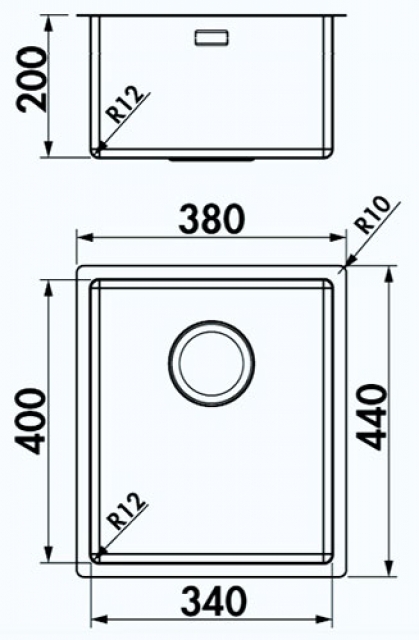 Beckenmaß: 400 x 340 mm / Tiefe 200 mm