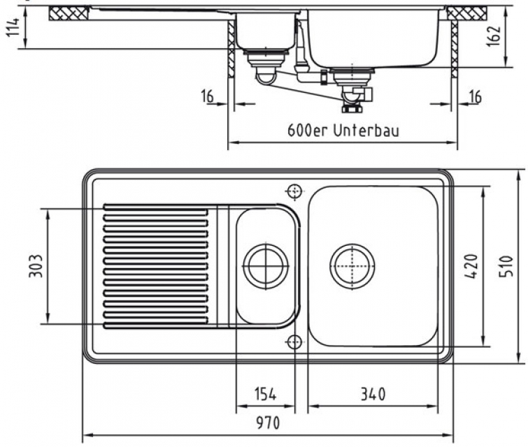 • Beckenmaß: 420 x 340 / 303 x 154 mm
