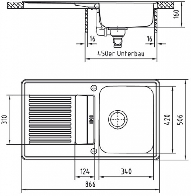 • Ausschnittmaß: 840 x 480 mm (R 10 mm)