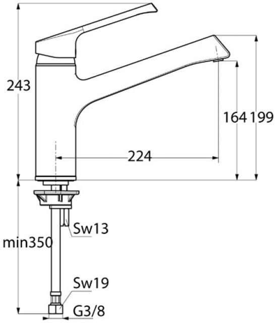 • Einhebelmischer chrom, mit schwenkbarem Gussauslauf, Keramikkartusche und ECO-Funktion.