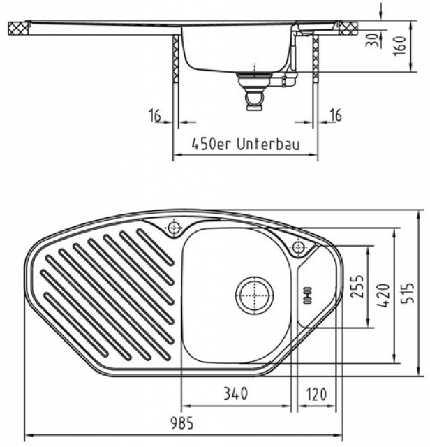 Rieber Econa 100 EL, Einbauspüle für Eckschrank, 1012021
