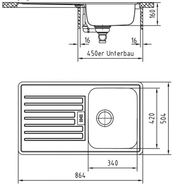• Einbauspüle für 45 cm-Unterschrank, reversibel