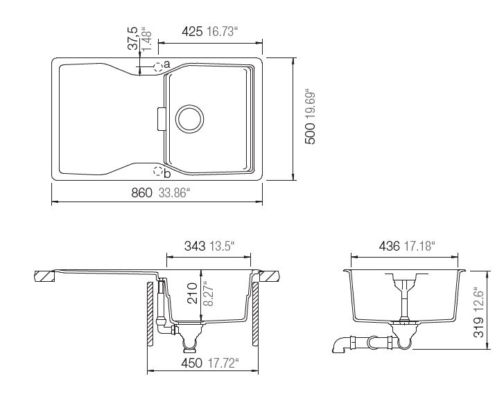 • diese Spüle ist nur als Einbau- bzw. Auflage-Spüle einbaubar, der Einsatz als Unterbau-Spüle ist nicht möglich! Es gibt von diesem Modell jedoch eine Schwester-Variante, die dafür vorgesehen ist (anstelle "A" am Ende "U" für das Unterbau-Modell)