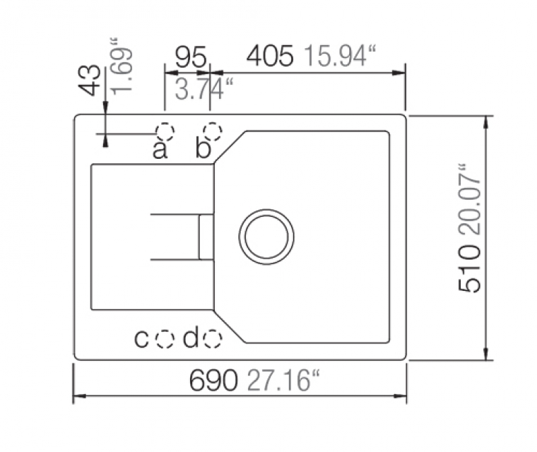 reversibel heißt: die Spüle läßt sich sowohl links als auch rechts herum einbauen; d. h. Sie können selbst entscheiden, ob Sie das Abtropfbecken auf der rechten oder auf der linken Seite haben möchten.